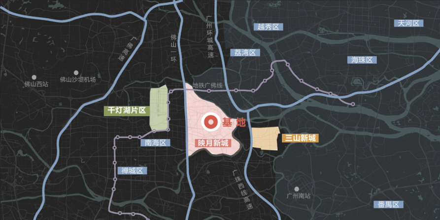 项目地块位于广东省佛山市南海区平洲映月新城,是桂城重点发展的三大片区之一。项目处在南番顺交汇处,毗邻广州市荔湾区,与广州白鹅潭隔江相望。项目所在地位于佛山一环与广州环城两条高速之间,与地铁广佛线邻近。