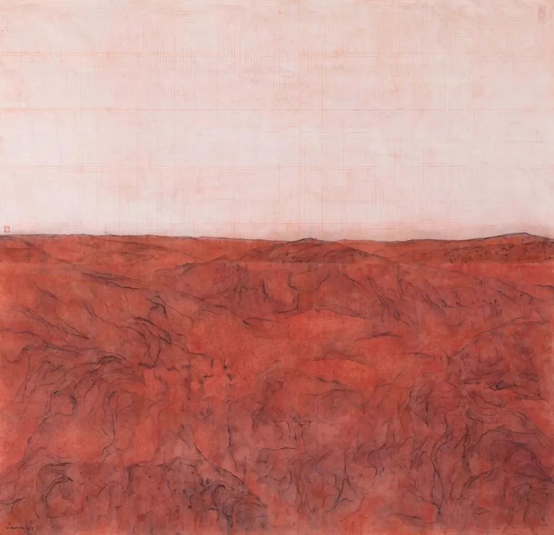 ▲ 云脉丹霞之三 丨 Cloud Veins, Red Sandstone 03, 纸本水墨, 123cm×123cm, 2020