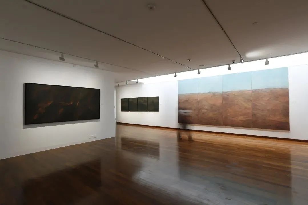但有趣的是当我们驻足观看他的绘画《千米》或《红岩》时,它并没有将我们的联想带入传统中国式山水的云雾缭绕,除了壮观的雅丹地貌之外,相反它似乎更接近于抽象表现主义画家马克·罗斯科(Mark Rothko)晚期的作品。