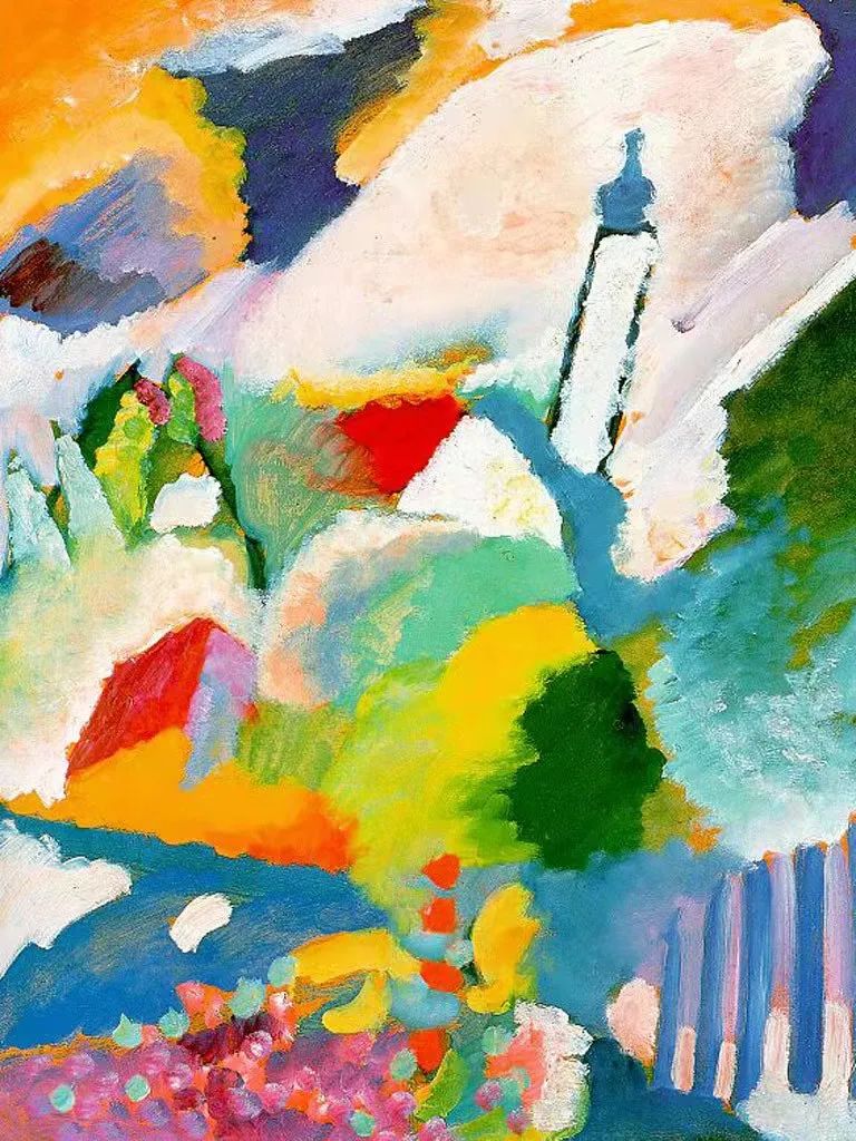 ▲ 康定斯基,作曲5号的草图(Das Jüngste Gericht/Komposition V),1911▲ 康定斯基,穆尔瑙的教堂1号(Church in Murnau No. 1), 1910▲ 红岩 丨 Red Crags, 纸本水墨, 200cm×240cm, 2021▲ 月离滂沱 丨 Lunar Observation, 纸本水墨, 138cm×70cm×6, 2021