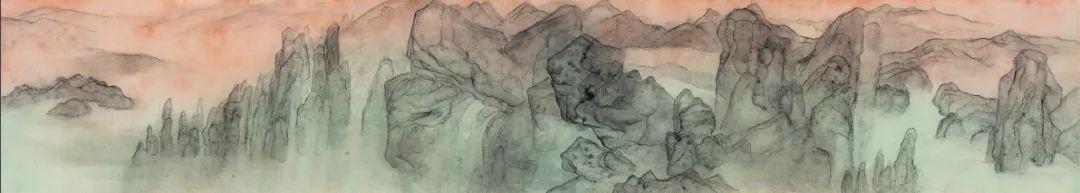 ▲ 千岩万壑 2021 | Mountains Upon Mountains 2021, 纸本水墨, 35cm×920cm, 2021
