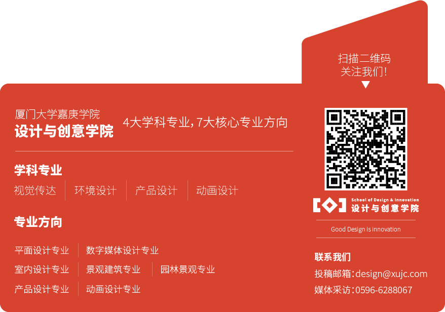 - 本文内容由数艺网收录采集自微信公众号厦门大学嘉庚学院设计与创意学院 ,并经数艺网进行了排版优化。转载此文章请在文章开头和结尾标注“作者”、“来源:数艺网” 并附上本页链接: 如您不希望被数艺网所收录,感觉到侵犯到了您的权益,请及时告知数艺网,我们表示诚挚的歉意,并及时处理或删除。