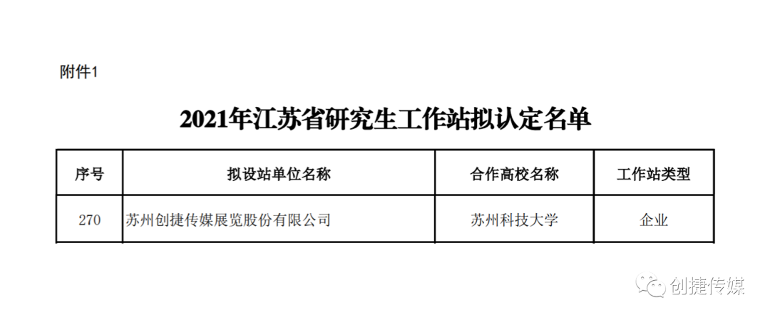 - 创捷传媒被认定为 “江苏省研究生工作站”