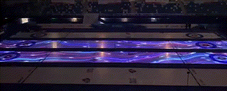 在国家游泳中心的冰壶比赛中,北奥集团携水晶石公司精心打造的“裸眼3D冰面投影”,打造全方面多维度的沉浸体验。开场秀以地面两条赛道光线传输、在大屏幕上汇聚成一个用线条勾勒出的冰壶造型拉开序幕,配合音乐和特种灯光联动,碰撞成为多个立体小冰壶,在大屏幕与赛道地幕之中不断穿梭、跳跃,呈现出沉浸式动态波浪、爆炸等效果。整个冰面投影效果充满动感和活力,极具视觉冲击力,灯光投影的联动配合显示出了极高的专业水准。