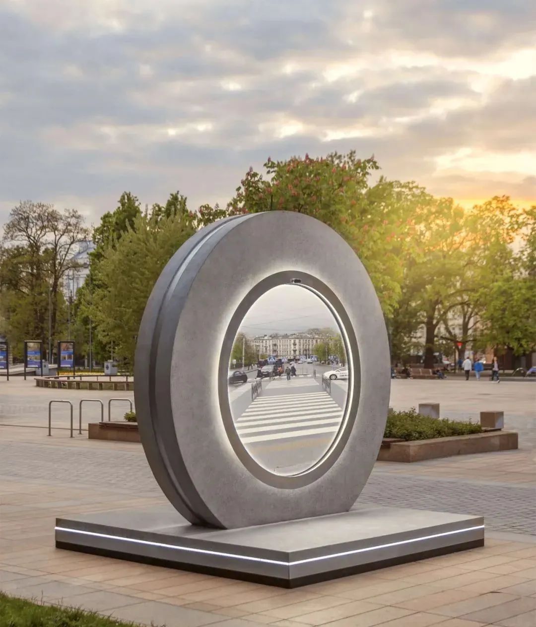 圆形的未来之门采用水泥材质,极简的设计带有“科幻色彩”的不确定体验。