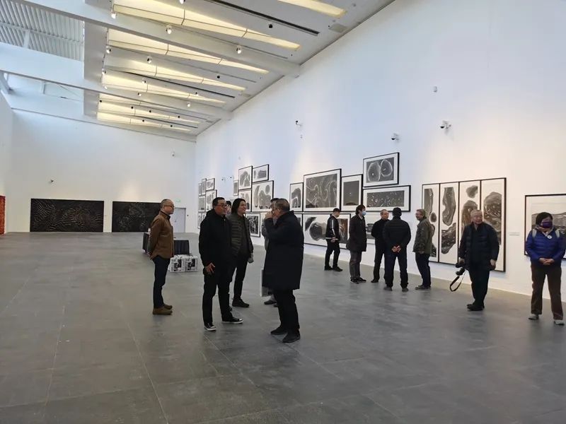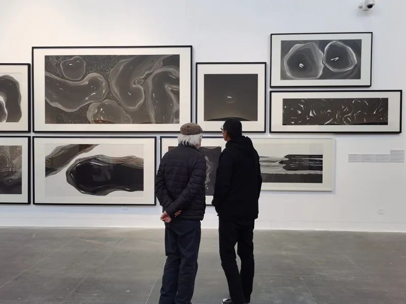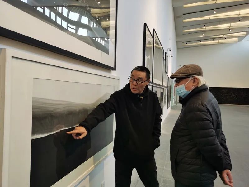 马泉与杜大恺在展览现场,清华大学美术学院美术馆