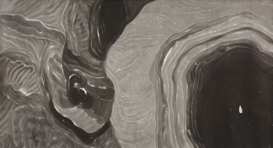 在这幅画中,马泉完全转换了视角和原有的形态,从一个“漩涡”入手,如一条无形生命隧道的入口。这笔确定后,其余的部分顺势画出,每一幅都不重复。马泉明确地表示:“这不是一种技巧的变化,而是意识的变化。我的画面和形式语言,离我真正内心的感受更近了。至今,我都感激以水墨为开始。虽然它是单一媒介,而且当时画出来的还不是我想要的最终作品,但水墨创作是我整个叙事行为的动机,它帮我完成了前期阶段的实验。更重要的是,促使我向着理性、综合、系统化的叙事行为转变。”