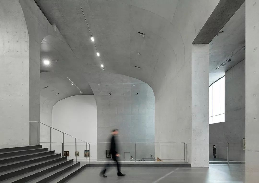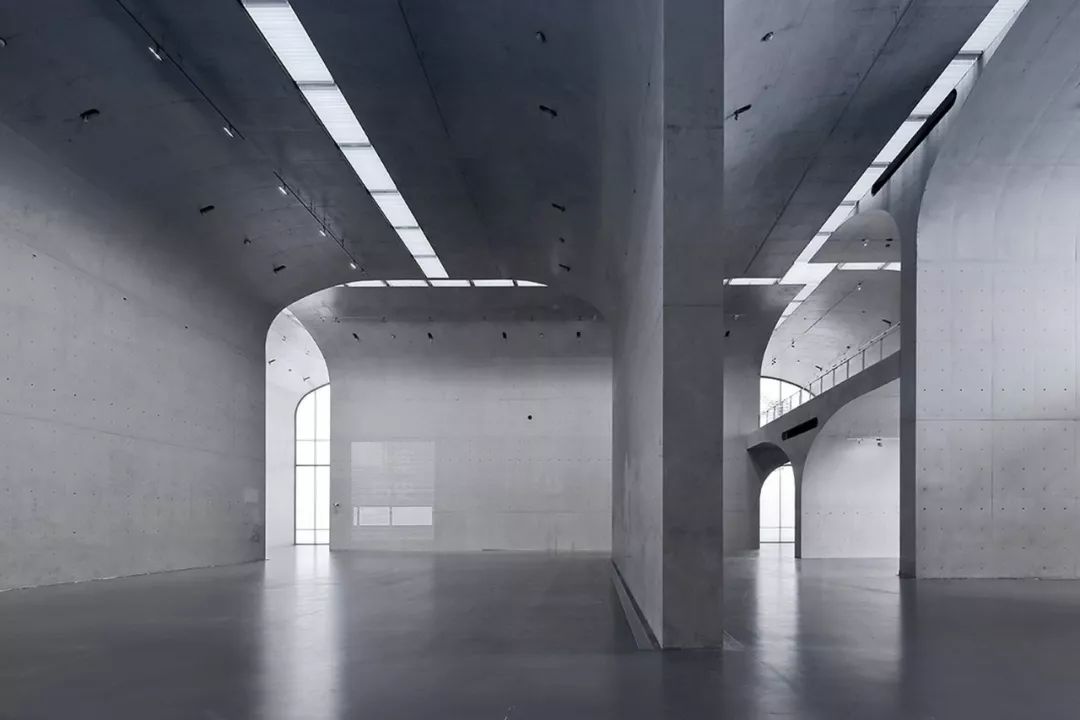 中国内地收藏家刘益谦、王薇夫妇创办的私立龙美术馆龙美术馆,是以“伞拱”悬挑结构自由搭配而成的场馆。其场馆主要是以灰色的混泥土浇筑而成,充满了工业时代特有的情怀,给人们一种穿越时空的年代感。纯粹的用混泥土结构和材料构建的空间呈现出一种原始的野性魅力,让游客感受到建筑、艺术和设计者三者间激烈碰撞的火花。