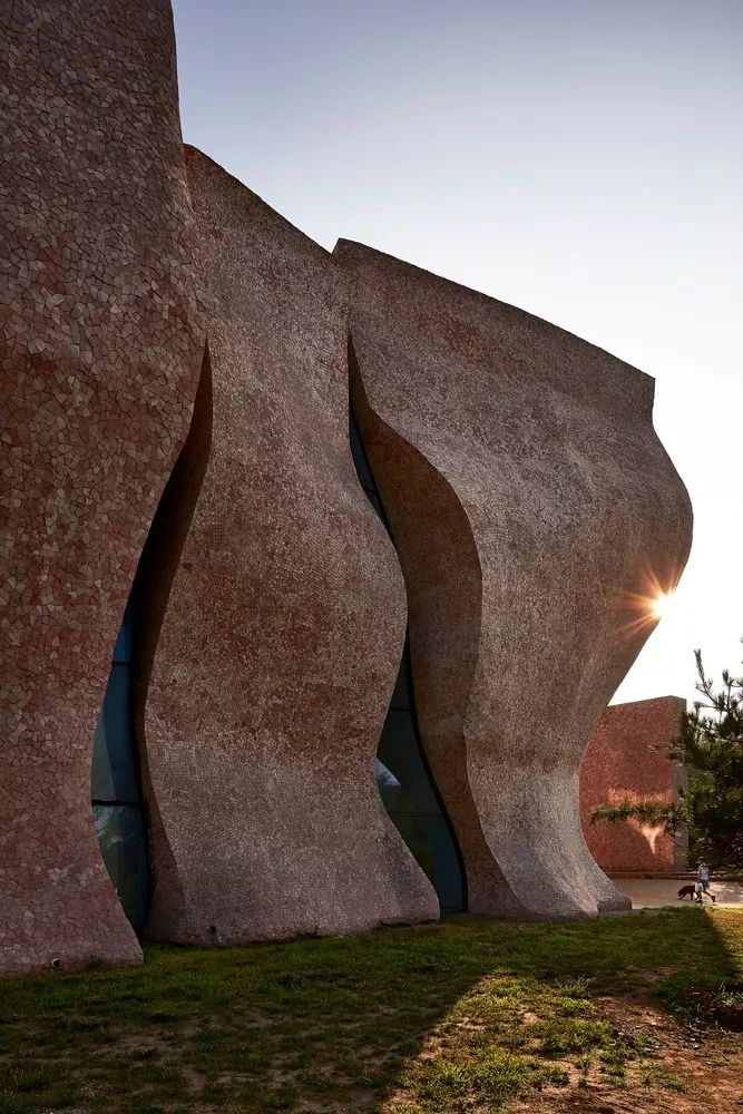 被称作“雌雄同体”的于庆成美术馆,设计构思用感性的词形容是“捏泥巴”,理性的词是流形:一个从头至尾充满运动变化的并有两个或多个不同表现形式端头的形体。而灵感来源和泥塑家于庆成本身的作品也有关系。虽然饱受争议,但仍然是一个大胆而富有想象力的美术馆。