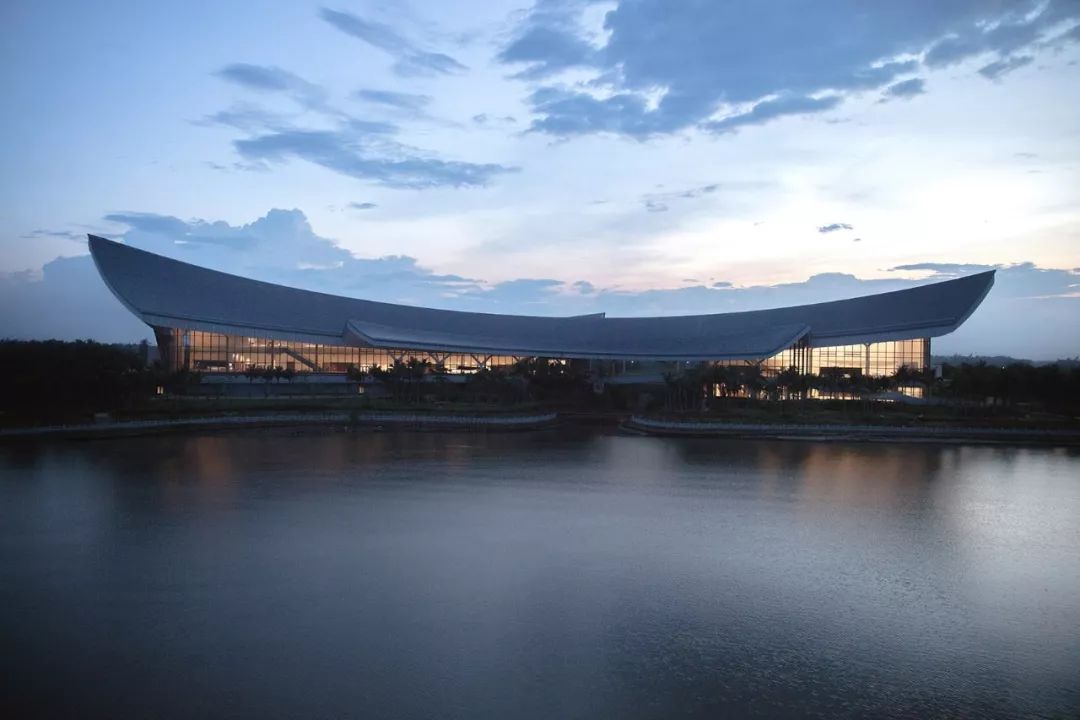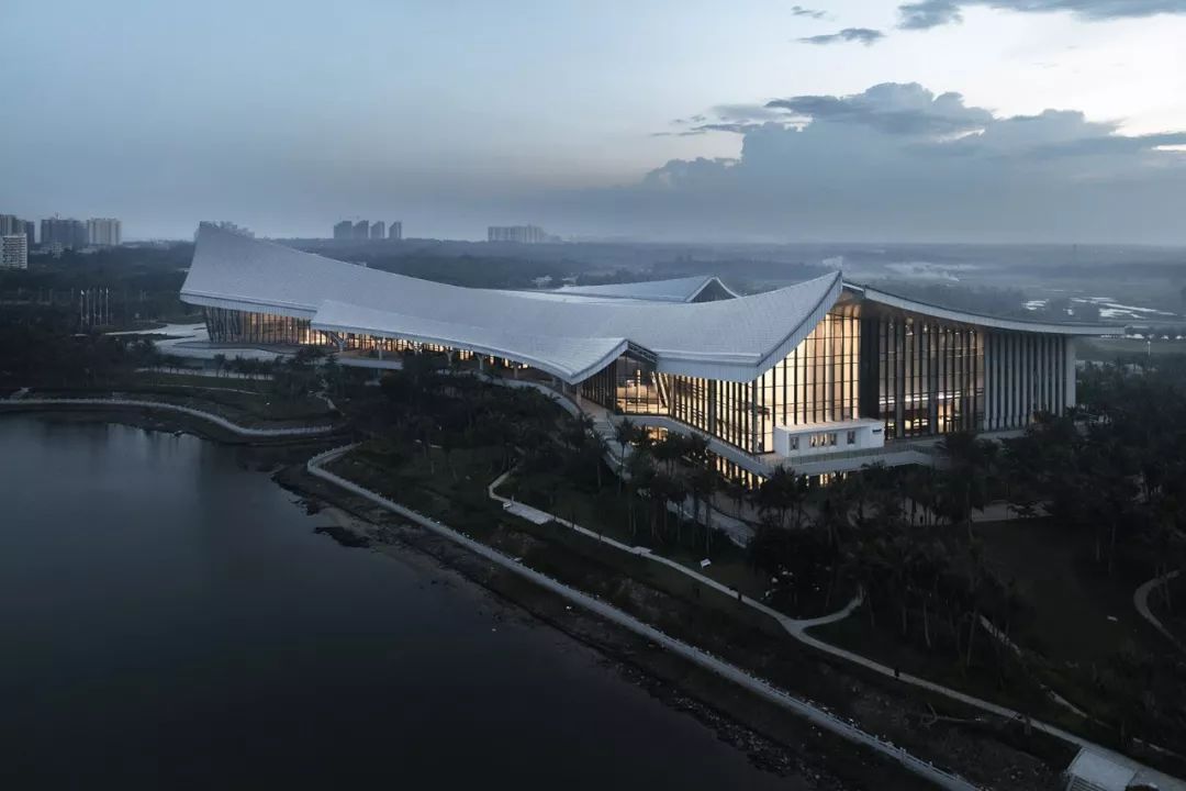 中国(海南)南海博物馆有着得天独厚的滨海景观,建筑形体在遇到场地内横贯的一段红树林湿地时,采取了连廊和屋顶双层最大达60余米的高跨方式,获得了难得的半室外景观空间和新奇的视角。沿南北向伸展并与海面平行的观海长廊,成为景观和展厅之间的中介,营造了一个开放、明亮、气韵流动、令人印象深刻、轻松愉悦的空间。
