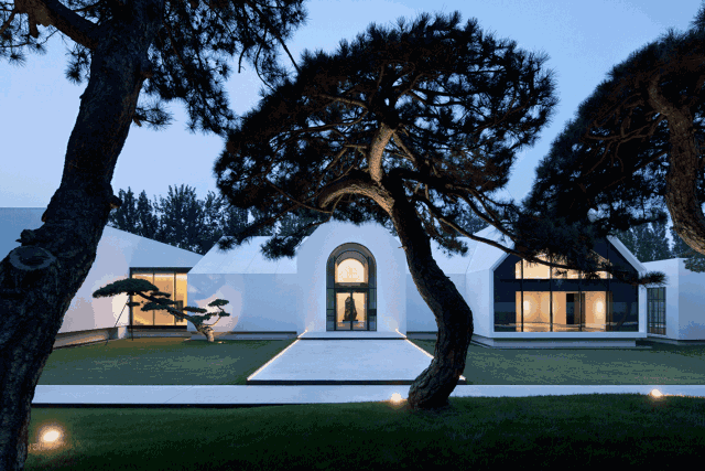 松美术馆是由华谊兄弟创始人王中军的跑马场改造而成,笔直的通道与虬曲的古松掩映着一座白色石块筑成的中式建筑。长达365米的院子中,199棵形态各异的古松翠柏共同构成一种苍劲的人文景观,“松”也成为了这里的标志。