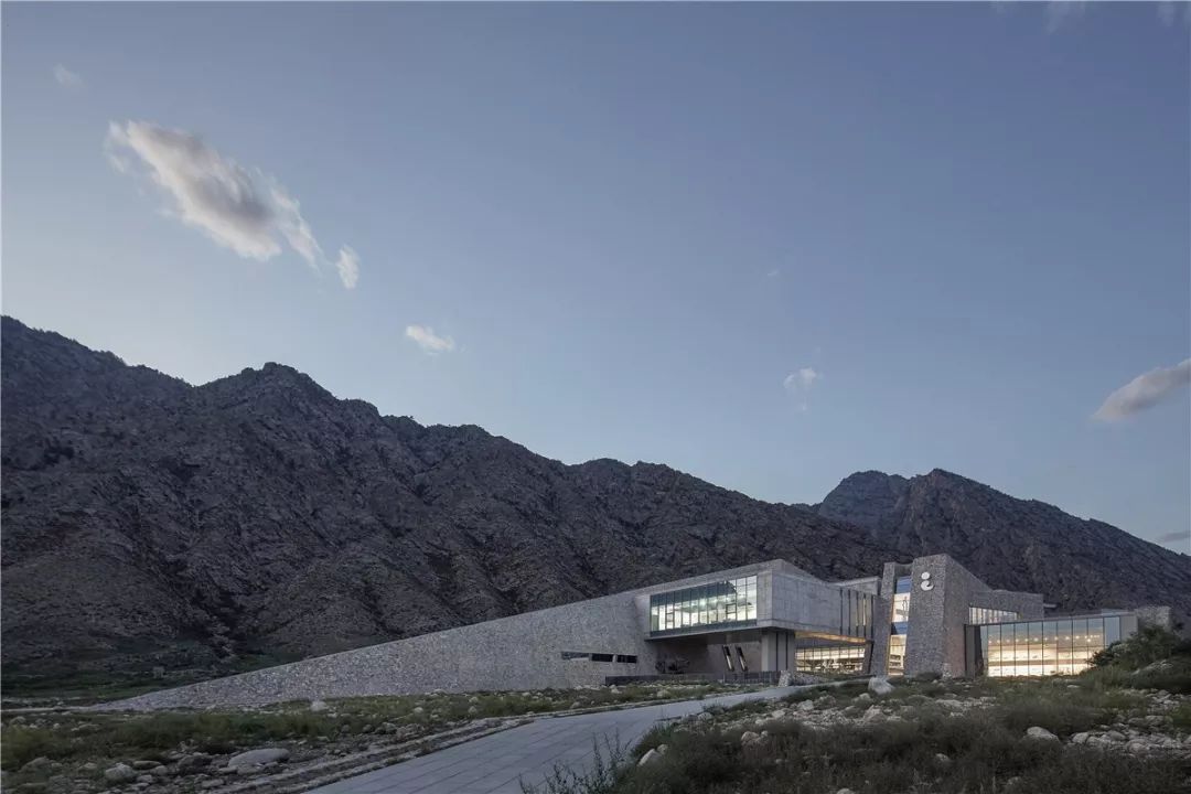 凤凰谷山顶艺术馆位于北京和承德交界处的燕山山脉之上,远眺金山岭长城。设计师用建筑的形态去继承和演绎“势”,依山就势,顺势而为,如此产生出一个与群山相得益彰的形体,反映了周遭连绵的山势和自然形态,与之融为一体。
