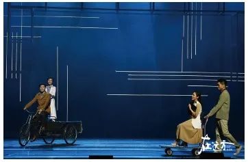 如何把戏剧放到不同的空间里去表达,在这里看不到电视剧或者剧情里所提示的具体环境,更多的是一种意向性的东西,是戏剧所要表达的一种深层次的东西。在舞台上,快递的元素其实无处不在,在这个基础上呈现更多“在远方”的概念,给导演和演员更多激荡的空间,这个多层次的空间又能给观众隐喻和暗示戏剧所要表达的理念。