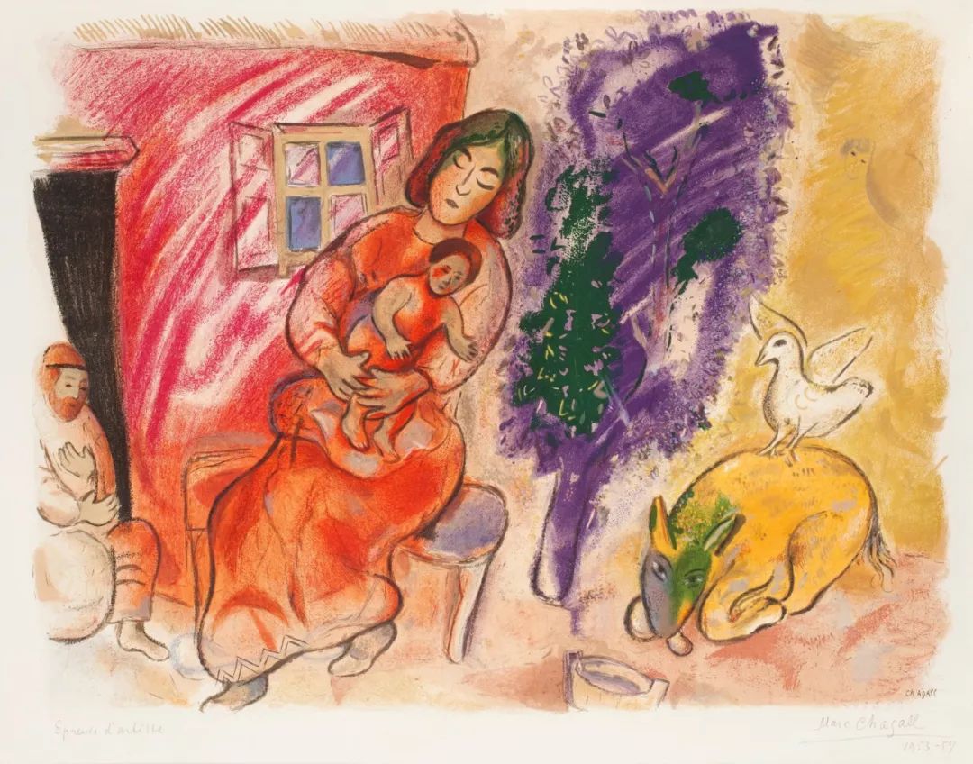 马克·夏加尔,媲美毕加索的绘画巨匠,巴黎歌剧院与纽约大都会歌剧院设计师,联合国总部永久纪念彩窗设计者,现代艺术史举足轻重的宝藏人物。