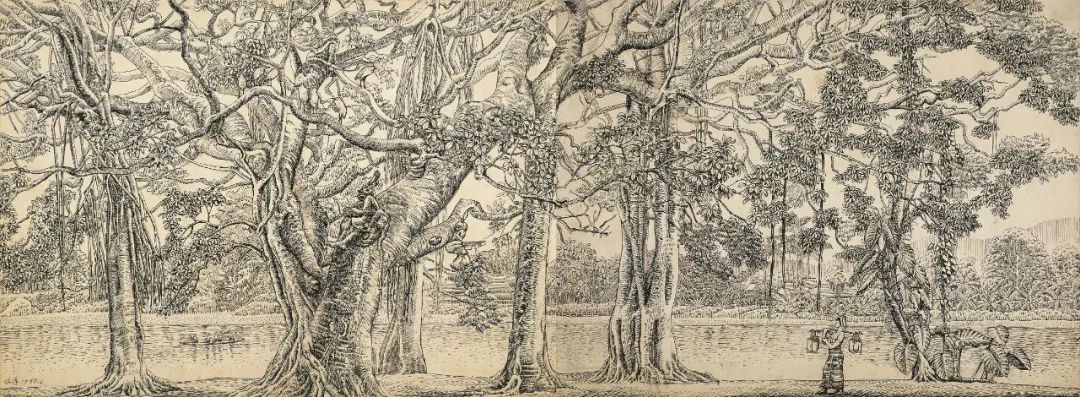 钢笔画 39.5×106.5cm