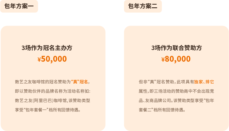PS:数艺之友咖啡馆的冠名赞助为“真”冠名,即以赞助伙伴的品牌名称为活动名称,如:数艺之友(阿里巴巴)咖啡馆。