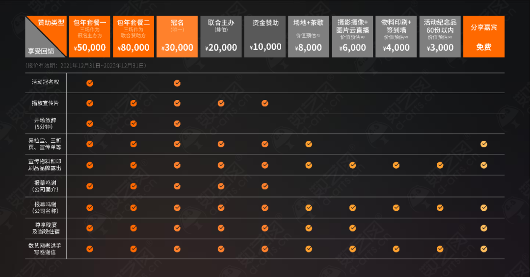 PS:但非“真”冠名赞助,此项具有独家、排它属性,即三场活动的赞助商中不会出现竞品、友商品牌公司。