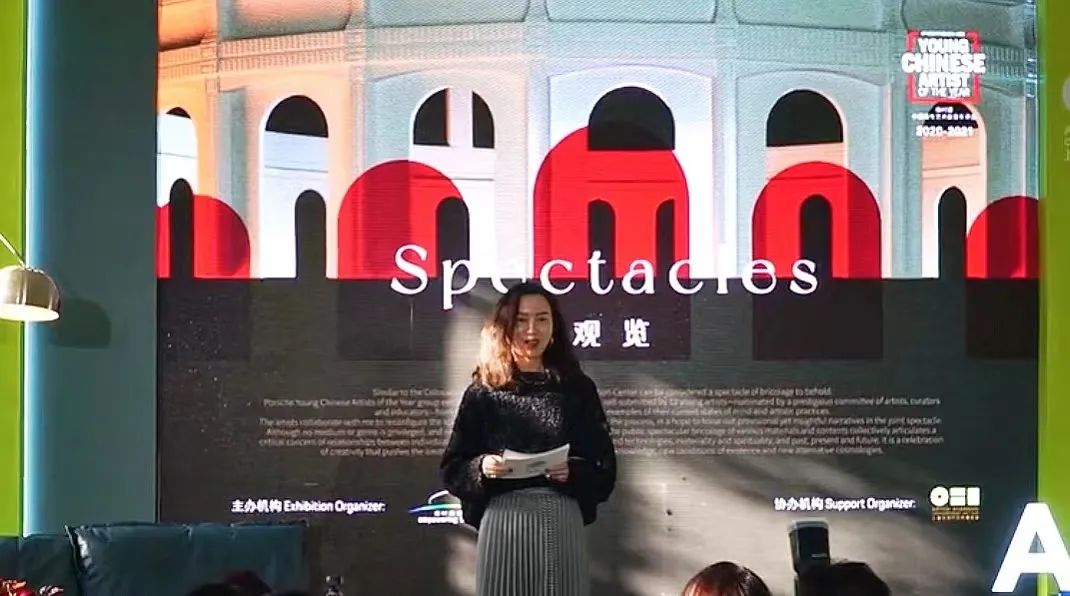 ▲ 保时捷中国传媒公关副总裁唐凤靓发言Q 青年艺术家双年评选, 今年已经坚持第五年, 一开始怎么想到去启动扶植和支持中国"青年"艺术家这个项目? 您认为保时捷坚持做双年评选的意义是什么?