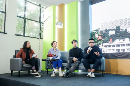 ▲ 保时捷艺术客厅特别呈现——“技术进化与人类社会”主题论坛(从左至右:上海民生现代美术馆策展人孙啟栋,以及三位提名艺术家刘昕、郭城、蒲英玮)
