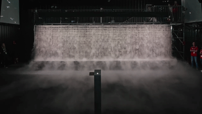 这个名为《云端》的装置,是世界上第一个“3D”打印语音对话框。它由1600个超声波雾化器组成,高2.8米,由语音识别系统控制。