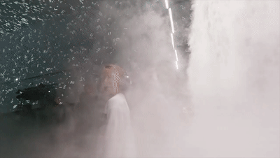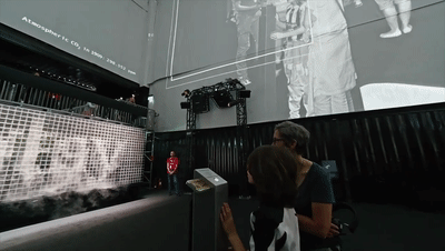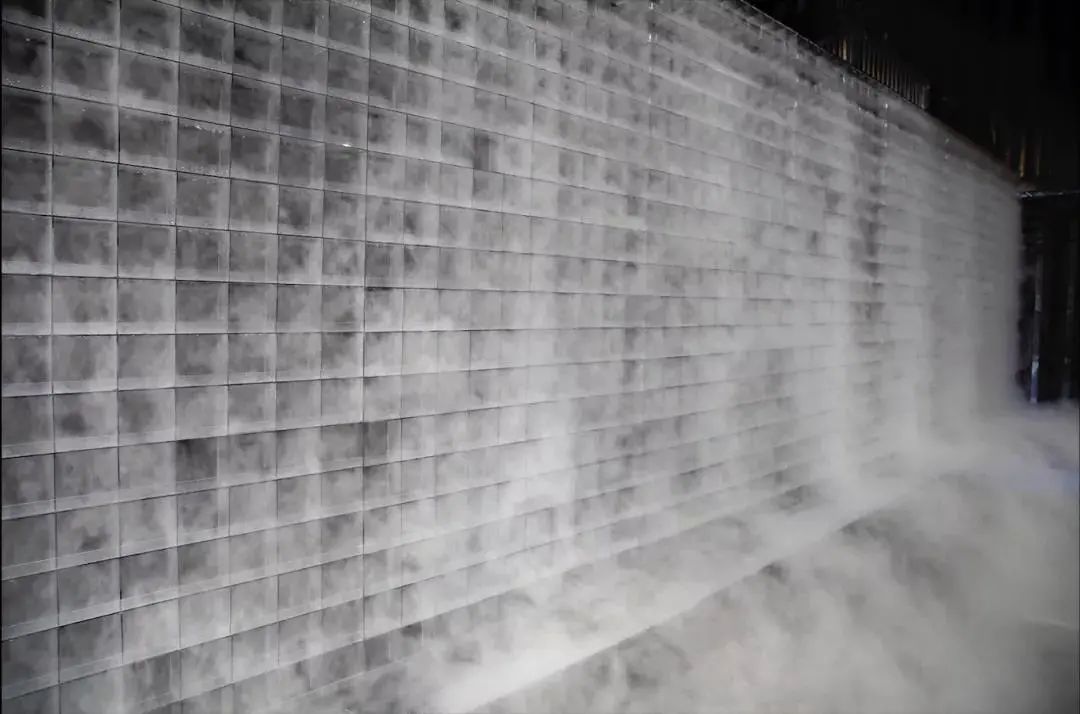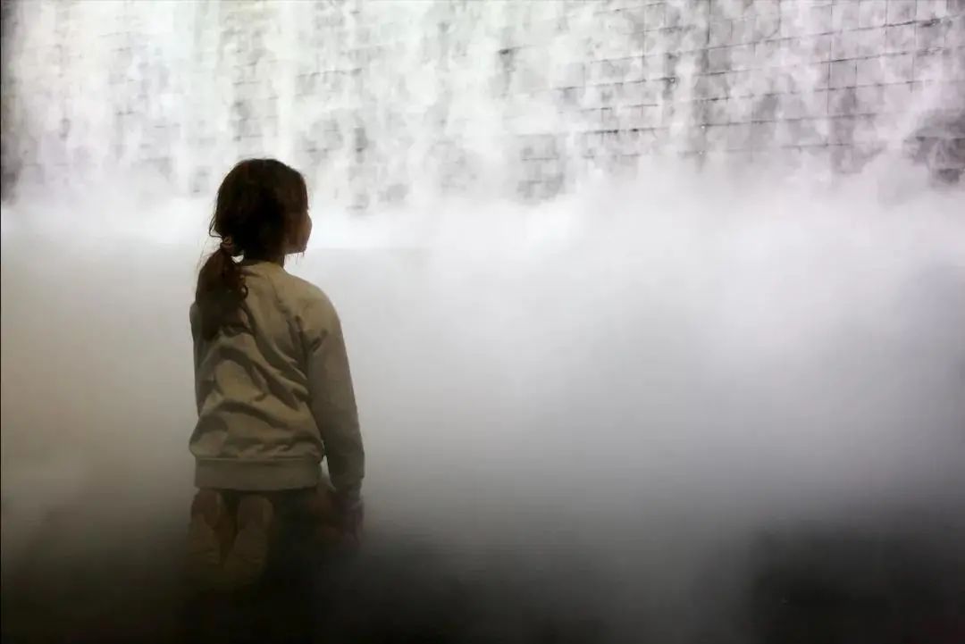 这些词句出现,消失,再出现……形成一个回味无穷的语言展示区。如果无人参与互动,装置看起来就只是一片由水蒸汽组成的云端“瀑布”。