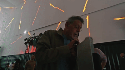 这里的对讲机实际上是特制开发的一种激光断层扫描仪。它可以捕捉从参与者所说的单词和语句并通过特定的系统,将其打印在铝上。随后就可以在“云中瀑布”中看到这个单词或是句子的形状。