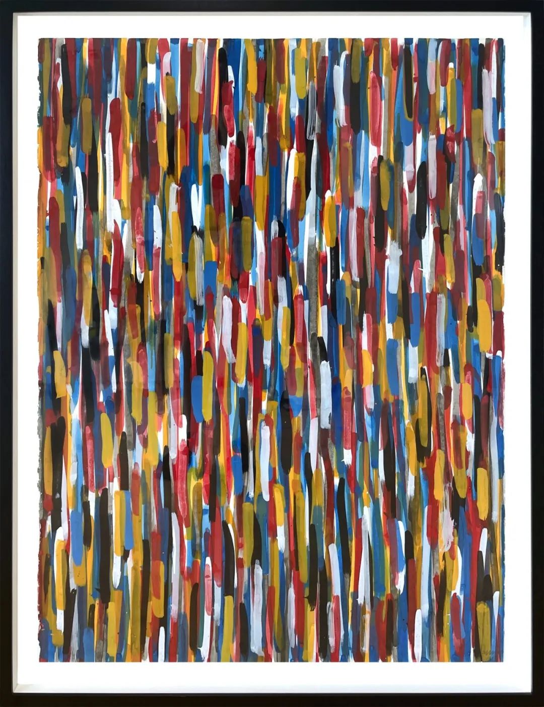 索尔·勒维特(Sol LeWitt)也同样朝着令中枢神经着迷的韵律迈步——他如同交响乐般的水粉画《短垂直笔触》(Short Vertical Brushstrokes, 1994)也充满了虔诚和无限的梦想。艺术评论家罗莎琳德·克劳斯(Rosalind Krauss)强调了对勒维特而言向下理解象征性的重要性,就像在解释十字轴一样。然而,他对古典音乐的热爱,通过这些特定的垂直领域在潜意识中产生了共鸣。例如,德国作曲家理查德·施特劳斯(Richard Strauss)在写他的最后四首歌时,就收录了赫尔曼·黑塞(Herman Hesse)的歌词——“灵魂,从你所有的防御中解放出来,进入灵魂开始聚集的神奇的恒星圈”,特别是这一段,“当我入睡时。”旋律乐句中强有力而柔滑的女高音(可以说最好的版本来自杰西·诺曼[Jessye Norman])叠加了细腻的琴弦,覆盖了心灵;勒维特也是如此,赭黄色、浓郁的朱红色、天蓝色、纯白色和象牙黑色的音符令人愉悦地呈现出和谐,仿佛在页面上“聚集”无眠时光。