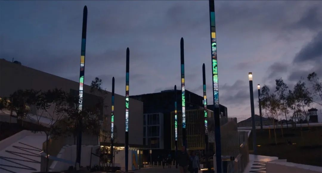 这件Ramus的数字艺术装置叫“The Pipes”,是一个沉浸式的数字视觉和音景森林。这件数字艺术装置作品的灵感来自普拉兰区(Prahran)独特的环境和历史,并结合了Ramus团队对这个公众空间未来发展的无限畅想。The Pipes 设计创造了一个沉浸式的数字森林,其中包含视觉和普拉兰社区独有的音景,它温柔地呼唤,邀请大众进入这个如梦如镜的空间。