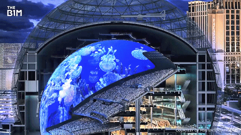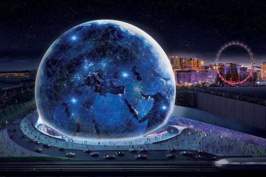 这个在拉斯维加斯的号称世界上最大的球形结构剧场,由麦迪逊广场花园娱乐公司(MSG) 和拉斯维加斯金沙公司合作建造,被称为——世界上最大的球形沉浸式体验中心“MSG Sphere”。这座耗资18 亿美元(约116亿人民币)的球形娱乐场所,高 112 米,最宽处大约为157米,拥有 17,500 个座位,所有座位都将提供高速互联网接入,并配备世界上最大、分辨率最高的 LED 屏幕,其像素可以达到19,000 x 13,500,观众在150米外都可以看到清晰的影像。建筑的外立面配有54000平方米的可编程LED屏幕,整个球体都是块屏幕,堪称全面屏建筑,打造了世界上最先进的科技兼娱乐沉浸式场所。
