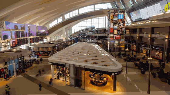 2013年,洛杉矶世界机场(LAX)委托Sardi Design作为创意总监,MomentFactory担任执行内容制作人等世界一流团队,为其打造一个沉浸式环境的解决方案,力求给旅客们带来不一样的机场环境体验,恢复旅行的浪漫、新奇的感觉。