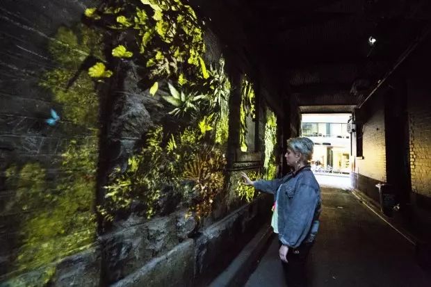 为达到交互效果,Jayson Haebich使用OpenFrameworks和C ++创建定制软件,该软件控制多层高清视频,并以双倍高清分辨率输出到两台投影机,软件还操控着两台XBox kinect摄像头,以追踪人群。当人们靠近墙壁,投射在墙壁的植物就会消陨,而随着人们的离开,植物又复活成长。