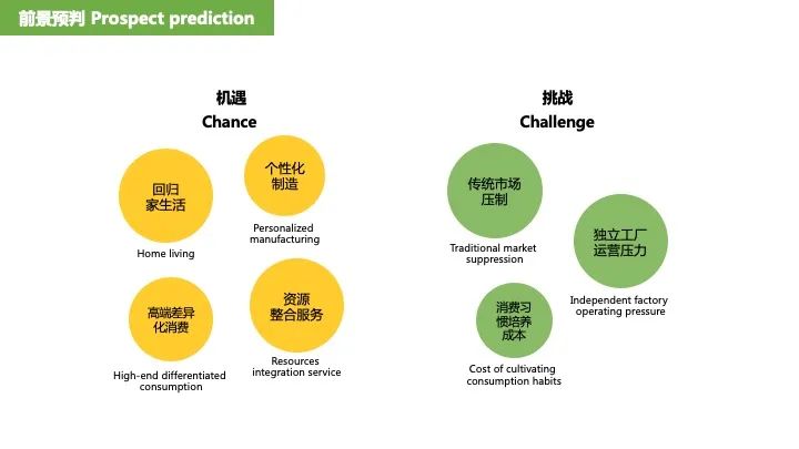 电商平台通过直接链接上游工厂与下游消费者,利用消费大数据分析用户偏好,指导上游工厂提升设计、工艺水平,并通过去除流通中经销商们的加价环节和品牌溢价环节,为消费者提供了高性价比和个性化的商品。另一方面,通过“先订单后生产”的方式,也帮助工厂降低了库存压力,实现效率提升。