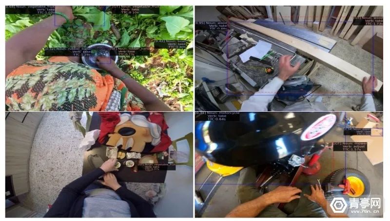 Meta还透露:Ego4D录制的视频来自于未经编排的日常活动,包括施工、购物、玩游戏、烘焙、撸猫/狗、社交等等。通过面部打码等方法,去除可识别的身份等信息后,大学才将这些视频数据提供给Meta。视频内容涉及环境、人手动作,以及和一百种不同的物品交互。除此之外,FRL科研人员也利用Vuzix Blade AR眼镜,在预先设定的实验室场景中,收集了额外400小时的第一人称视频数据。