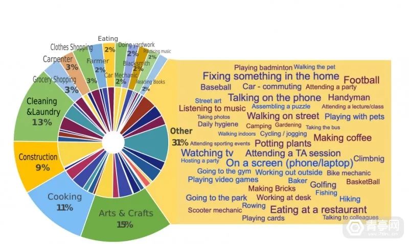 而和许多视频数据不同,Ego4D视频通过头戴摄像头来拍摄,因此可以模拟第一人称视角,而且它们是一系列动态的活动,而不只是一张一张图片。因此,Ego4D的出现有望为第一人称计算机视觉打开新的场景,用于穿戴式摄像头、家用机器人助手等设备,这些设备将通过第一人称摄像头来理解周围的环境。