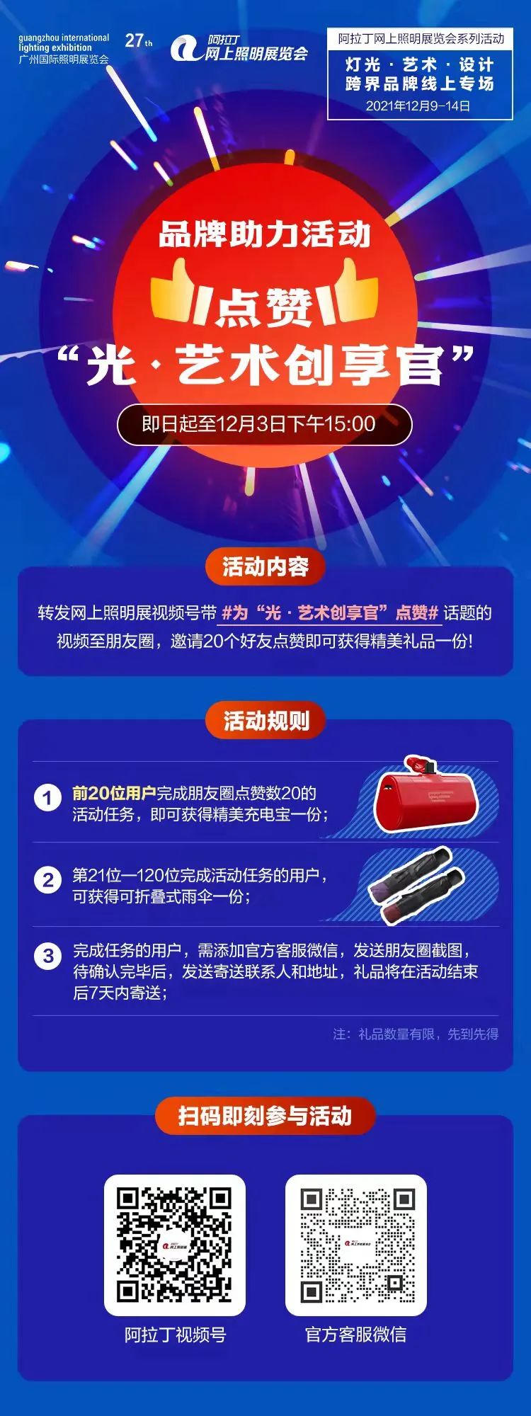 随着审美水平提升,人们对光艺术产业的需求越来越高。为此,阿拉丁网上照明展览会将于12月9—14日推出「灯光·艺术·设计」跨界品牌线上专场,与广州设计周2021线上线下联动,向社会各界呈现行业内优质照明灯具、光艺术作品以及智能家居解决方案,传递灯光价值。