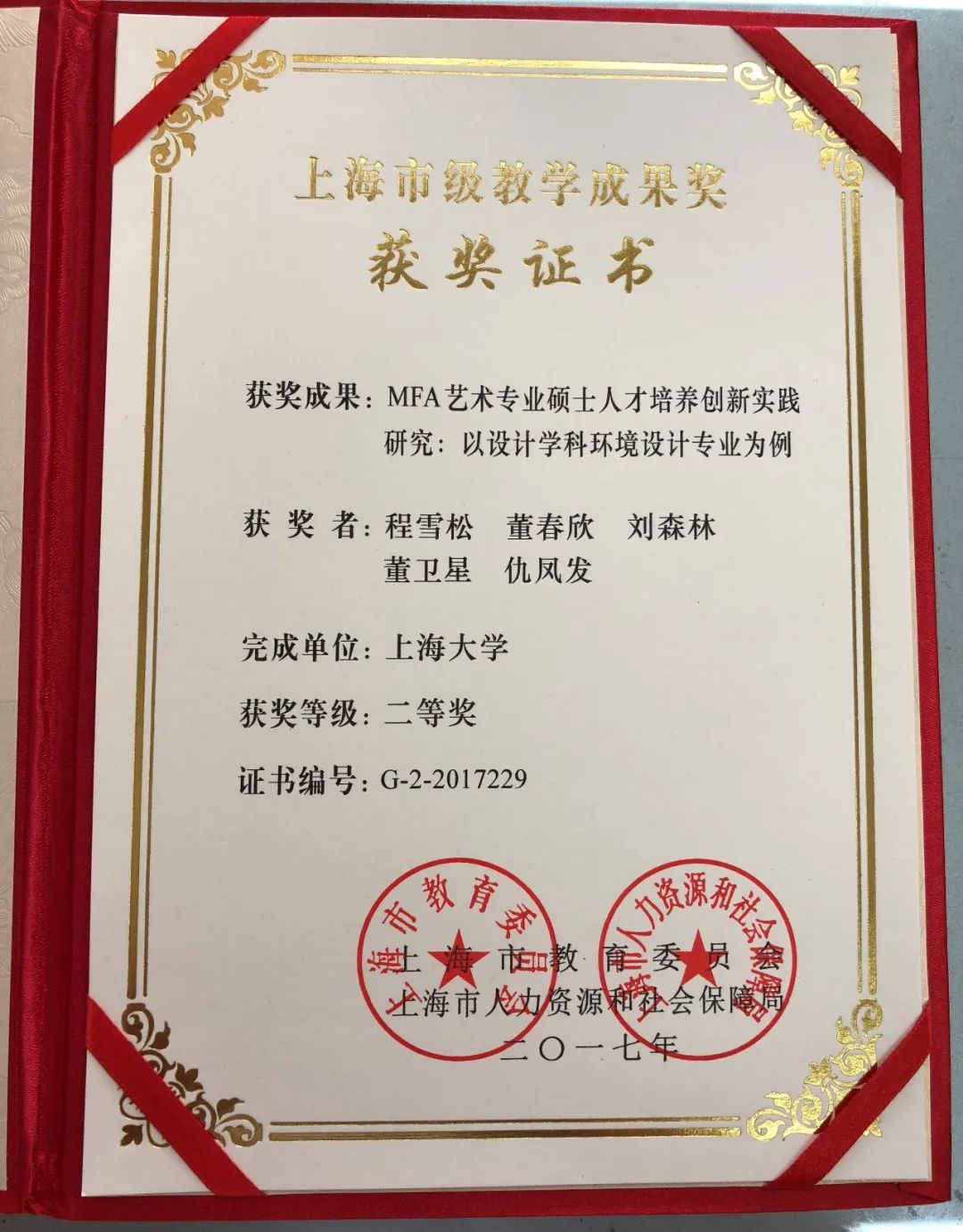 MFA艺术专业硕士人才培养创 新实践研究:以设计学科环境设计专业为例 | 上海市高等教育教学成果奖 | 省部级二等 | |