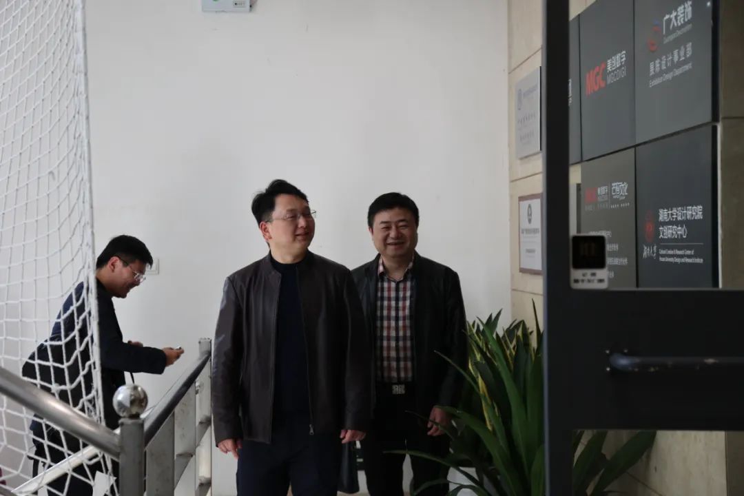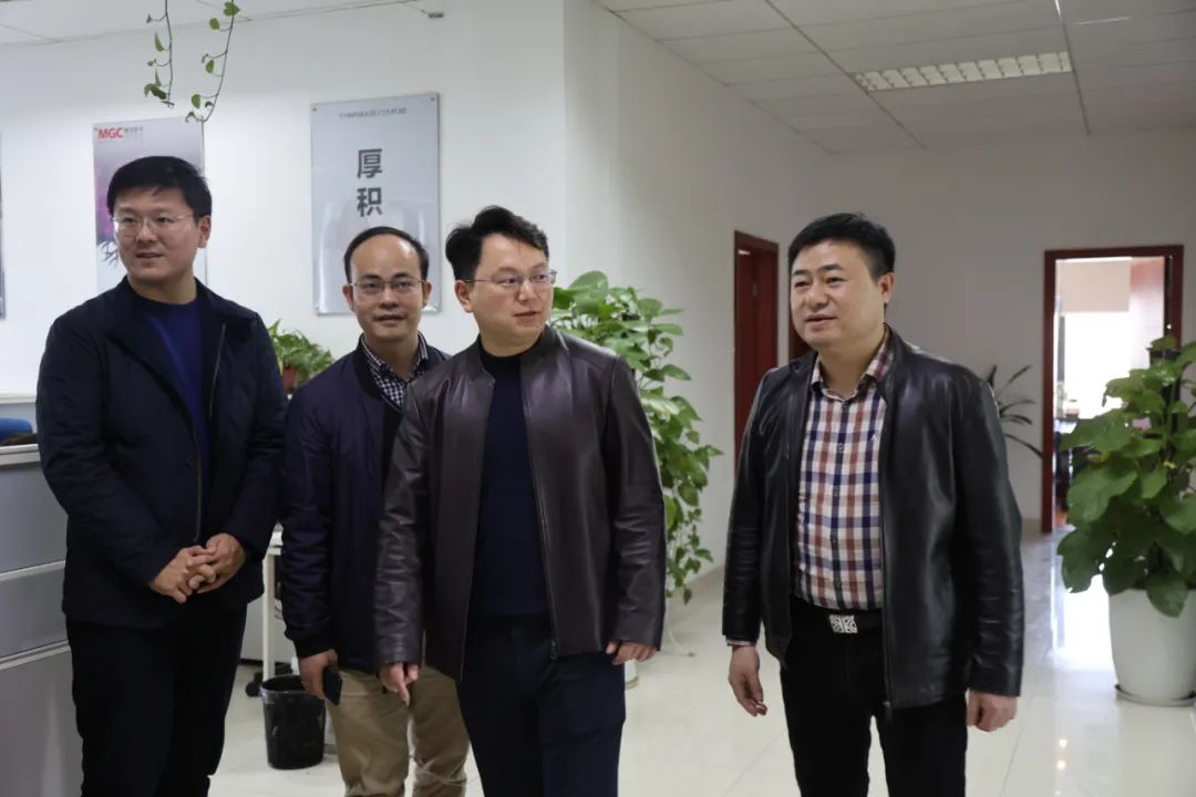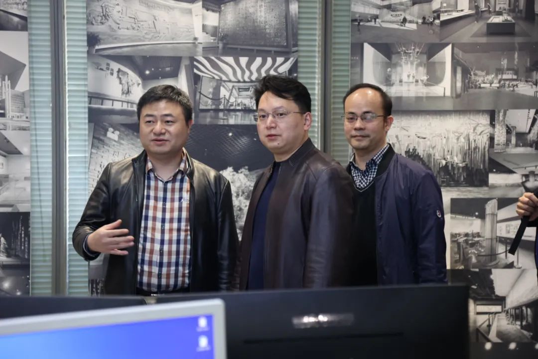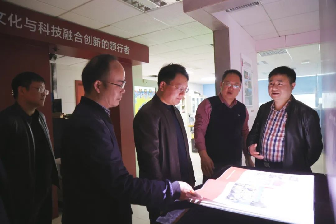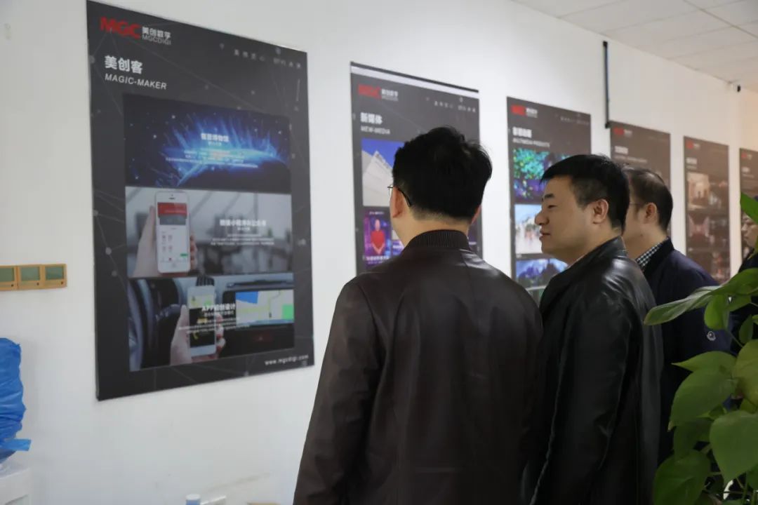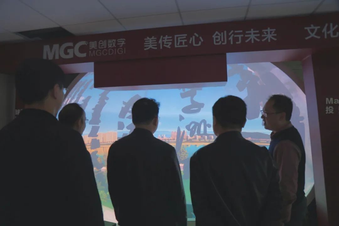 11月26日,湖南省委宣传部文改办副主任雷锟,湖南股交所总经理余春晖,副总马路明一行莅临美创参观考察。