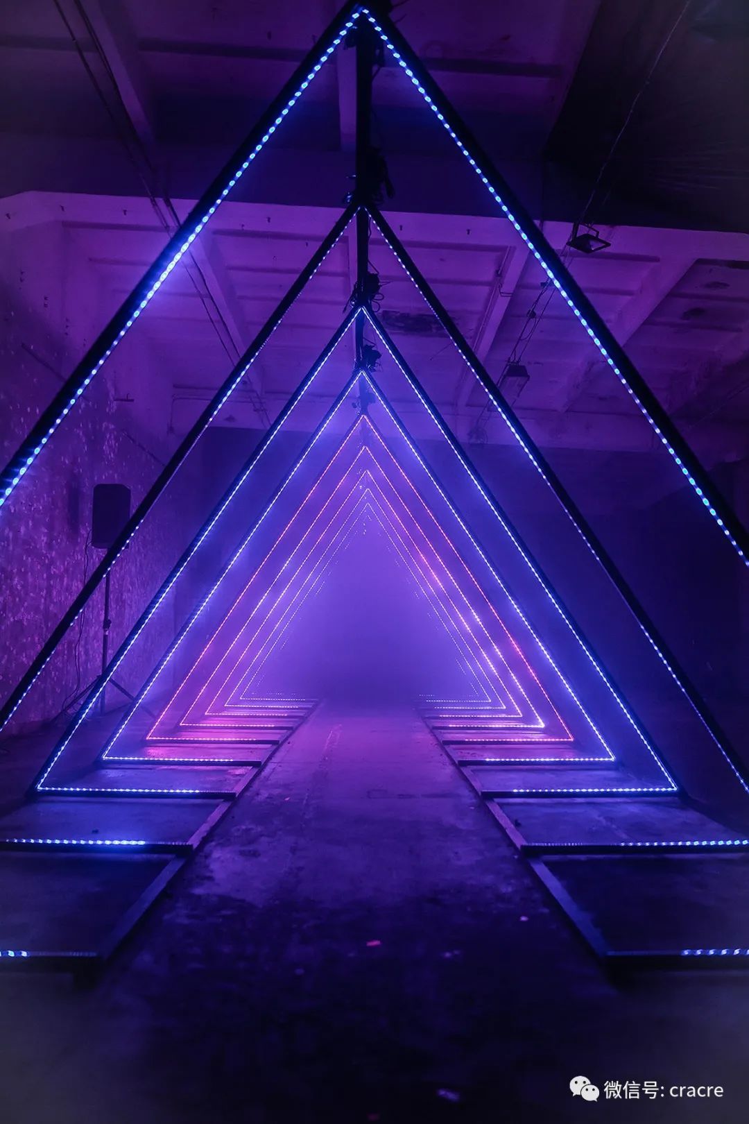 2880颗LED灯珠加上环绕立体声,三角型结构的狭小空间给人一种压抑而新奇的沉浸体验。