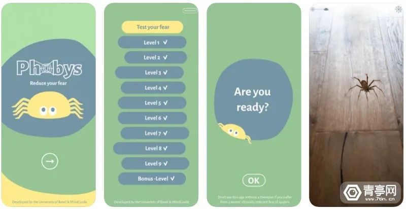 近期,为了帮助人们减轻对蜘蛛的恐惧,巴塞尔大学科研人员开发了一款移动AR应用:《Phobys》。临床试验结果显示,《Phobys》在治疗蜘蛛恐惧症方面初见成效,实验对象在家中完成几次训练后,再见到真蜘蛛也没有之前那么害怕了。