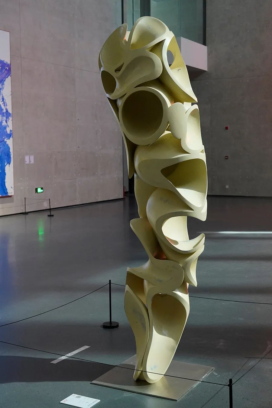 作为英国最负盛名的后现代主义艺术家,今年73岁的托尼·克拉格一直被艺术界认为有取代雕塑大师亨利·摩尔的势头。本次成都双年展展出了他的《直立》。这件作品的外观,像是许多坚硬的管道或圆鞘重叠在一起,然后被一把无形而锋利的刀削成现在的模样。