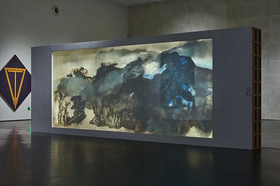 著名艺术家徐冰带来了《背后的故事:泼彩夏山》,这件作品延续了艺术家自2004年开始创作的系列作品“背后的故事”。这系列作品呈现给观众的是一幅惟妙惟肖的中国山水画,但转向作品的背面,就会发现这幅山水画是通过对光的调配,用干枯植物、麻丝等看似平常的物件所构成的。艺术家称之为“光的绘画”。