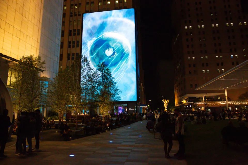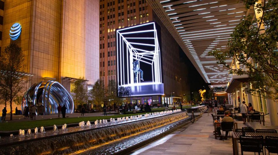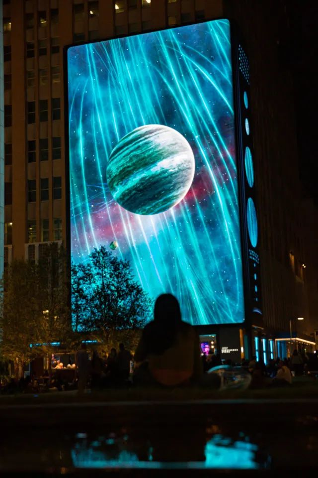 AT&T 和全球建筑公司 Gensler 邀请 Moment Factory 的创意和技术团队在达拉斯市中心(AT&TDiscovery District)建立沉浸式和引人入胜的多媒体体验。将 The District 作为一个结合物理和数字世界的公共空间,创建反映实时信息(包括一天中的时间、天气和季节)的动态视觉内容。