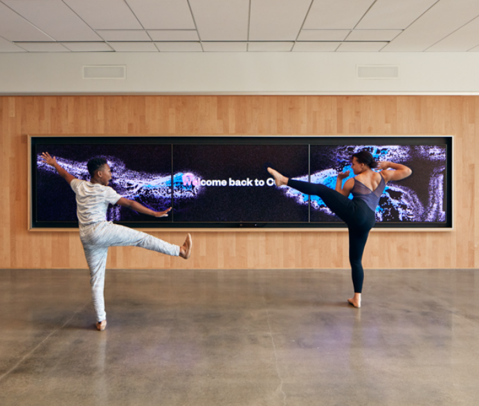 当没有人与装置互动时,来自 COCA 社区的真实音乐家、舞者和表演者的录制动作就会出现,使屏幕栩栩如生。