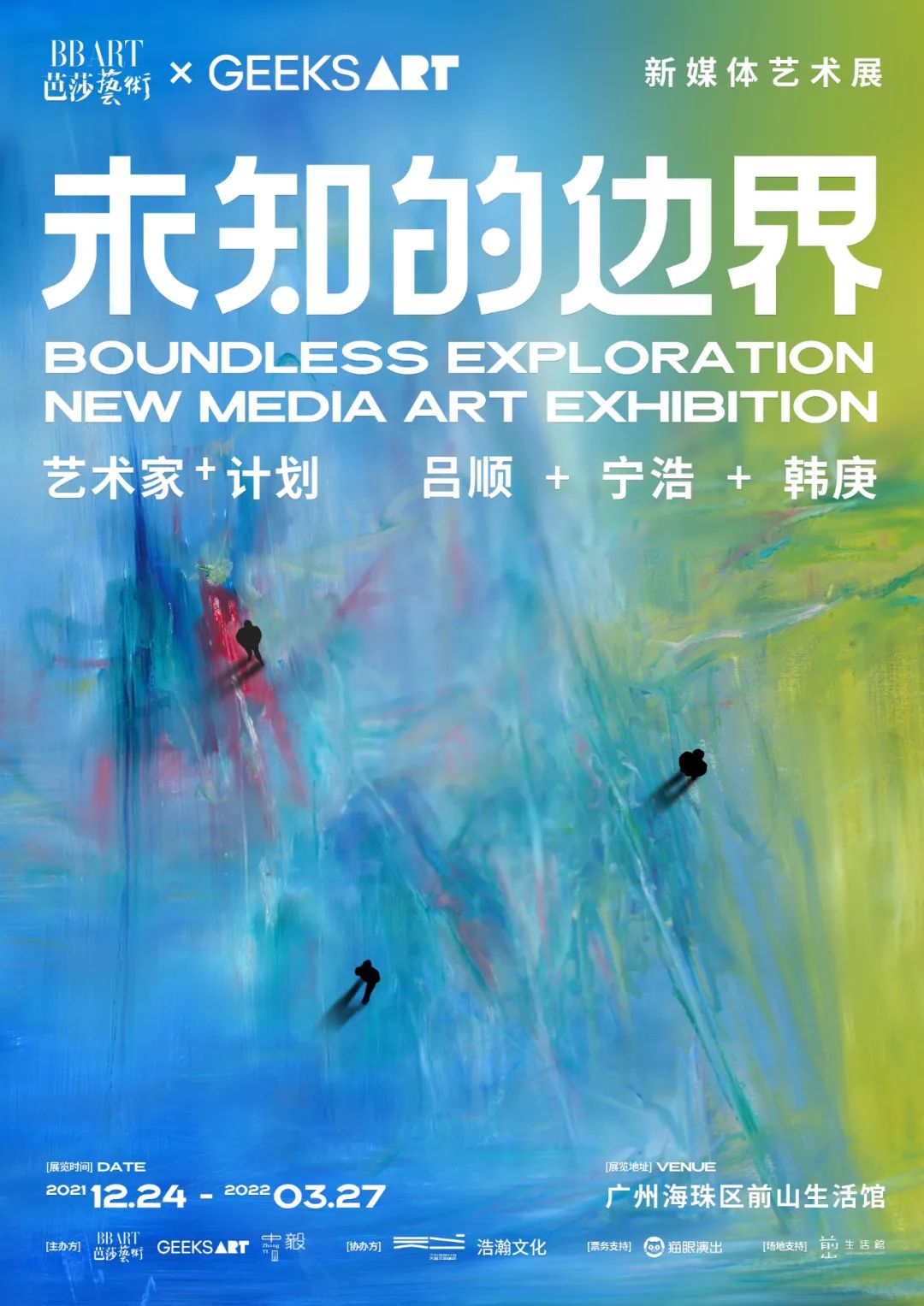 Boundless Exploration New Media Arts Exhibition时间:2021.12.24 - 2022.3.27此次线下新媒体艺术展《未知的边界》,《芭莎艺术》特邀三位来自不同背景的创作者,联合新媒体艺术团队GEEKSART,透过细腻油画笔触和新媒体艺术的科技手法来描绘其心中对于“边界”的阐释。展览以综合材料创意展厅的形式,融入新媒体艺术的沉浸式表现手法,打造出神秘无边界的探索式展厅。据悉,展览中还将独家展出韩庚、吕顺及宁浩三位嘉宾的专访VCR及部分私人物件。无论是作为画家的吕顺呈现出的哲学世界观,还是导演宁浩肆意挥洒的画家韵味,亦或是演员韩庚的抽象油画初体验,展览都将向观众逐一解析艺术的底色。画家可以是演员,导演何尝不是画家?《芭莎艺术》跳出传统的纸媒思维,大胆地将杂志内容具象化,重构和解构三位嘉宾不同身份下的生活场景,引领观众浸入到对作品的思考以及自我的感知中去,从而从共创中挖掘每个人的多元可能。当科技融入艺术,艺术才能更好地走进生活。新媒体艺术团队GEEKSART在展览中融入创意的综合材料应用,利用声光电媒介的特殊性及电脑编程代码的可塑性来调动观众五感,与参与者共创艺术无边界的视觉故事。在这里,一幅幅视觉作品不仅仅有情绪色彩,也通过交互技术加持,展现了其独有的“科技范”。当观展者依次步入“感悟”-“浸入”-“共创”的视听场域,可以充分地感受到由三位嘉宾的意识思想所产生的对时空的影响和升华。架上与架下、平面与立体、时间与空间、过去与未来,不同群体的人对当下艺术创作观念之间的思考,进行了多维度、多视角的艺术火花碰撞。艺术展,可以说是一个国家最平等的公共场所之一,它比歌剧院亲民,比画册课本立体。《未知的边界》沉浸式艺术展就提供了这样一个,既立体又亲切的自由审美现场。它始终以一个尽可能包容的姿态,欢迎这个世界上所有寻求未知的人们,无关年龄,无关阅历。而多元的文化力量和丰富的内容,也足以让孩子们在艺术展中得到精神上的富养。当孩子们在展厅参观时,他们不仅能够看到目前国内最顶尖的艺术创造类展览,而且能够积累有关绘画、美学等的相关知识,得到美的熏陶。从艺术家、导演、艺人三者的角色碰撞交融,到数字艺术手段的再创,以及与素人的共创,无一不在实验演绎着艺术“未知的边界”。当下,让我们与《芭莎艺术》和新媒体艺术团队GEEKSART一起,以自身历练的沉淀,碰撞展览的艺术探界故事,萃取出蛰伏于生活的无限可能。