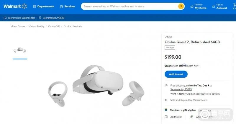 沃尔玛本周上线翻新版Quest 2,价格低至199美元,再一次刷新Quest 2最低价。