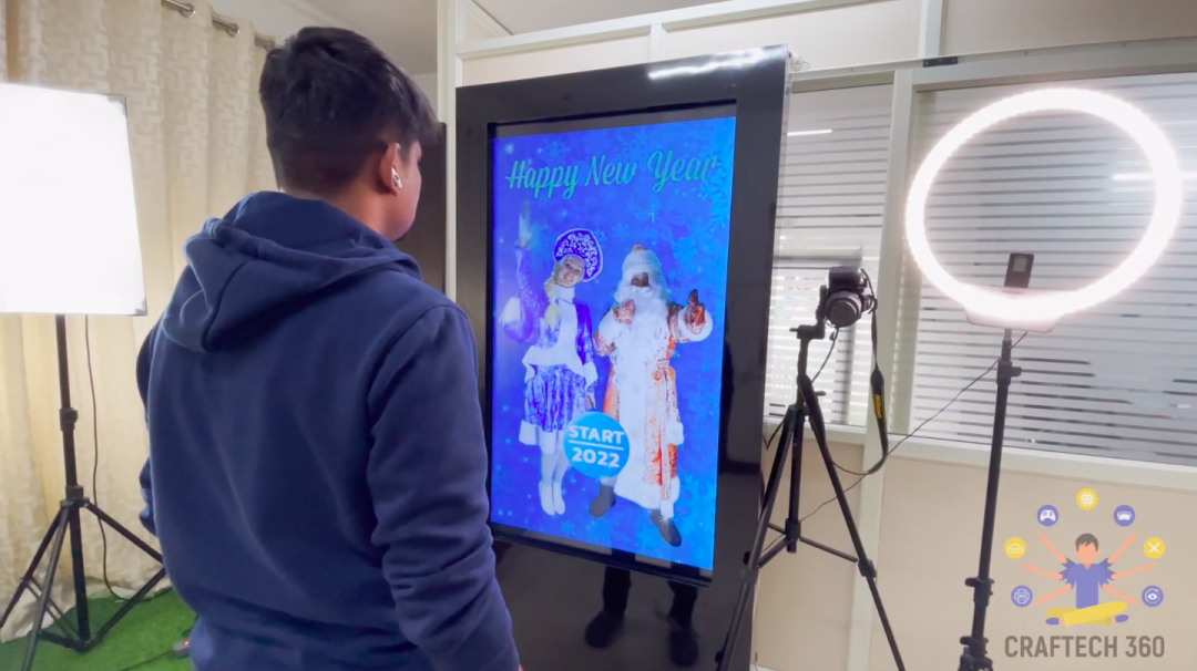 你可以站在照相亭前,看着自己出现在大屏幕上。瞬间你所选择的的 3D 人物被加载到屏幕上,客人可以在其中移动和与道具互动,就好像它们是真实的物体一样。