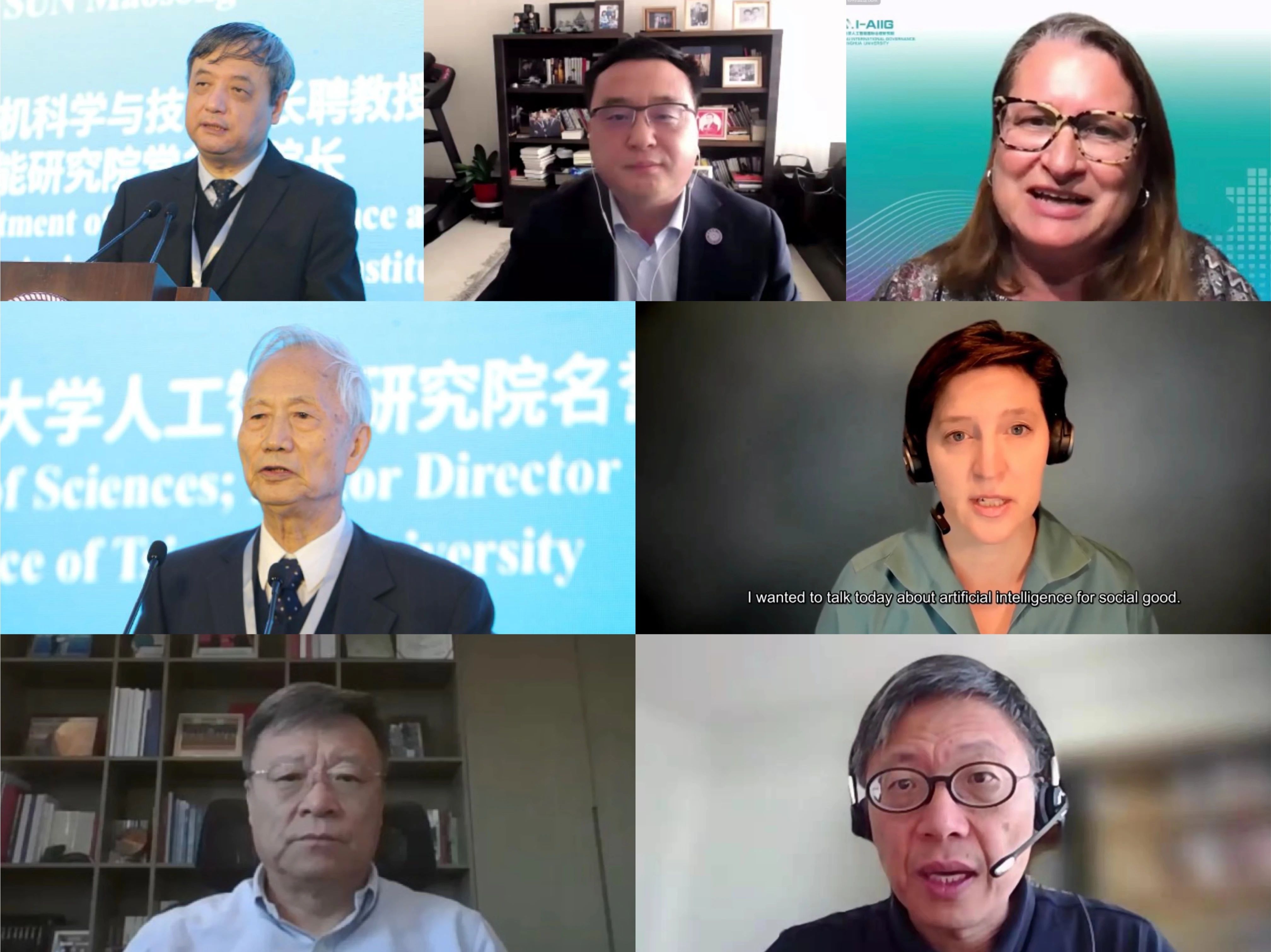 在12月4日举行的开幕式上,中共十九届中央委员、十三届全国政协副主席、党组成员汪永清在开墓辞中表示:“面对人工智能发展带来的风险挑战,国际社会必须携起手来、共同应对,推动开放包容、协商互鉴、共治共享,不断提升人工智能全球治理水平。” 清华大学校长邱勇在欢迎辞中表示:“大学作为科技文明的重要策源地,不仅要在人工智能基础理论与技术前沿突破与创新,也要积极传承人文关怀,塑造良善的人工智能价值与伦理,推动建立科学合理的人工智能国际治理机制。” 联合国开发计划署驻华代表白雅婷在欢迎辞中表示:“在此次疫情应对、抗击气候变化的应对中,人工智能发挥了重要作用,国际合作至关重要,必须从全球层面来探讨人工智能治理体系的构建路径的相关话题。” 科技部副部长李萌致辞表示:“未来,人工智能治理要倡导敏捷治理、包容共享、人类命运共同体的理念,实现人工智能发展与安全的平衡、不同群体共享智能红利的平衡、智能化与绿色化的平衡、差异发展与合作共赢的平衡。” 工信部副部长徐晓兰致辞表示:“未来,工信部将携手相关各方,在共促人工智能持续健康发展、共建包容共享的人工智能治理规则、共创国际合作新局面等方面大力合作。” 外交部军控司副司长马升琨致辞表示:“未来,围绕如何进一步规范人工智能军事应用问题,建议从国际法、道德、技术、治理层面,遵守国际法和国际关系基本准则、秉持‘智能向善’理念、加强对人工智能技术的评估和监管、积极倡导全球共同治理。” 联合国助理秘书长、秘书长技术事务特使办公室主管官员玛丽亚-弗朗切斯卡·斯帕托利萨诺(Maria-Francesca Spatolisano)在视频致辞中表示:“作为一项能够带来真正变革的技术,人工智能的应用也伴随着严峻挑战,需要在全球范围内进行更好的引导与合作。” 图灵奖得主、中国科学院院士、美国国家科学院外籍院士、清华大学交叉信息研究院院长、人工智能国际治理研究院学术委员会主席姚期智在视频致辞中表示:“平衡包容’的人工智能治理体系的建构,将进一步释放人工智能的潜能,更大程度的保证人工智能的安全性。” 清华大学副校长杨斌主持开幕式。