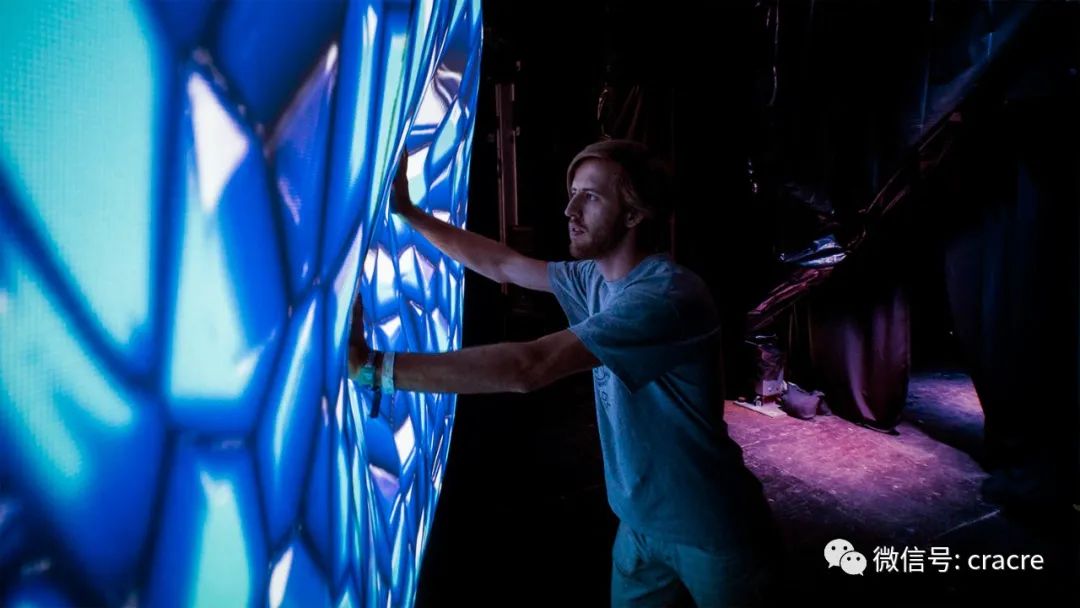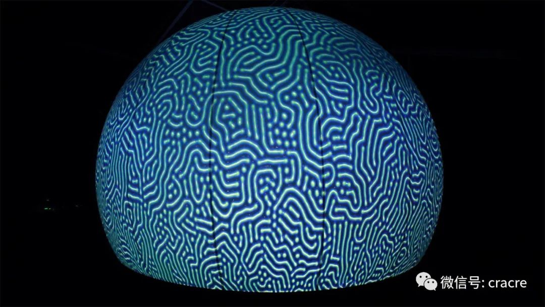 随着音乐的变化,球面上细碎的波纹开始跟着节奏变幻自身的色彩。