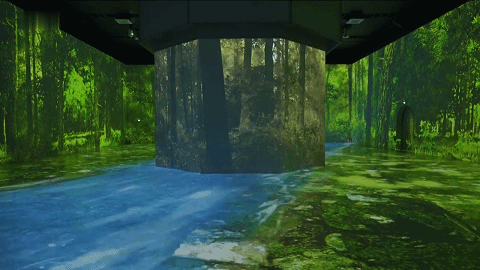 将敦煌内容解体、再重组,用敦煌壁画作品中的经典元素作为表达千年文化的“领路人”,呈现于360°大空间。