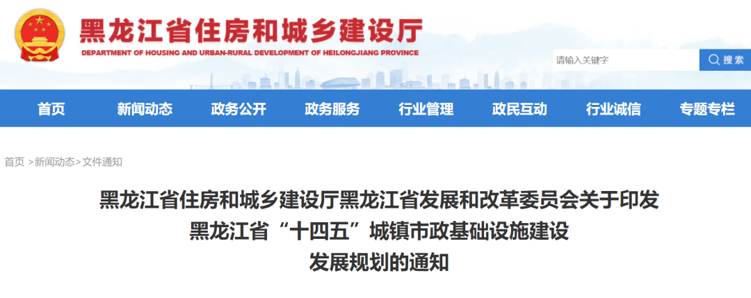 《黑龙江省 “十四五”城镇市政基础设施建设发展规划》